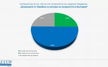49.9 процента от българите не смятат, че бежанците от Украйна са някаква заплаха за сигурността в България. На обратното мнение са 25.2 процента, а останалите се колебаят по въпроса. Това показва изследване на „Галъп интернешънъл болкан“, проведено между 31 март и 8 април.