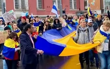 Мирно шествие в подкрепа на Украйна срещу руската агресия се проведе в столицата. Хората започнаха да се събират около 18:00 ч. от площад "Александър Невски" . Към 19.15 ч шествието, наброяващо няколко хиляди души - доста повече от вчерашната демонстрация на "Възраждане", се отправи към Руския културно-информационен център, след това демонстрацията продължи към БНТ и паметника на съветската армия.