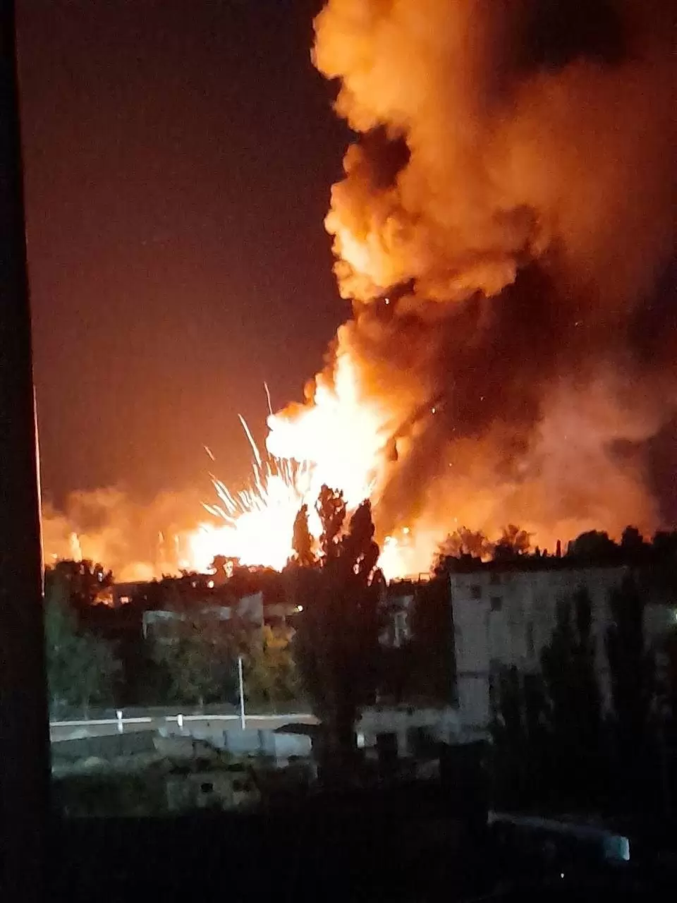Във видеото, разпространено от украински източници, се вижда как HIMARS удрят складове в Нова Каховка.