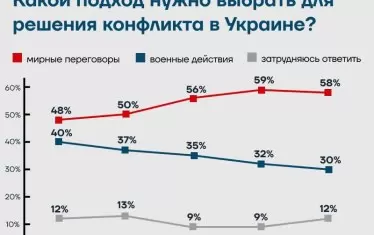 По-голямата част от анкетираните все още са на мнение, че конфликтът трябва да се реши по мирен път. Само 30% от участниците в проучването са били в полза на конфронтацията през ноември, минимумът за целия период на изследването.