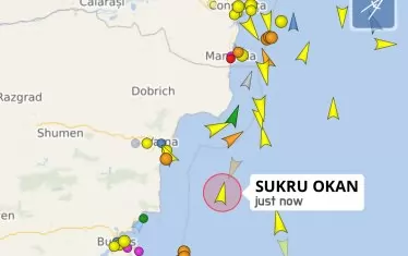 Според данните на няколко специализирани сайта за следене на морския трафик товарният кораб "Сукру Окан", по който Русия днес даде предупредителен изстрел, се намира край бреговете на България.
