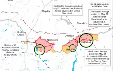 Въоръжените сили на Украйна (ВСУ) контраатакуват в района на Харков и не позволяват на руските военни да навлязат дълбоко в региона. Руската армия превзе през последните две седмици около 200 кв. км. на север от Харков. Това се посочва в последния доклад на Института за изследване на войната (ISW).