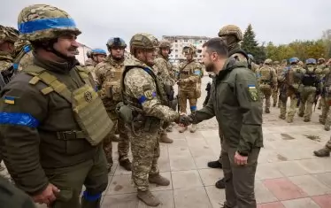 Президентът на Украйна Володимир Зеленски изненадващо се появи днес на официалната церемония по издигането на украинското знаме в град Изюм. Градът бе освободен преди дни от украинската войска, руснаците избягаха, оставяйки танкове, БТР-и и муниции.