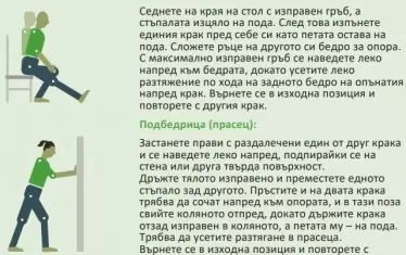 Физически упражнения след изписването. Упражненията след прекарана инфекция са много полезни за подобряване на общия тонус, намаляване на недостига на въздух, намаляване на стреса. Тук обаче важат серия от уговорки – не трябва да се правят упражнения при гадене или замаяност, при тежък недостиг на въздух, при стягане в гърдите, изпотяване, увеличаваща се болка. Упражненията се правят минимум час след хранене. За избор на подходяща трудност на упражненията СЗО предлага следния тест - ако можете да кажете едно цяло изречение, без да спирате упражненията или без да се задъхате, значи можете да увеличите нивото на трудност. Ако не можете изобщо да говорите докато се упражнявате, или можете да казвате само по една дума и изпитвате силно затруднено дишане, значи нивото на трудност е твърде високо. Златната среда е ако можете да кажете изречението, но се налага да направите една или две паузи за да поемете въздух и дишането ви е средно до почти крайно тежко затруднено. От СЗО припомнят, че задъхването при упражнения е обичайно и това не е вредно или опасно. Ако въздухът изобщо не стига, следва да се почине и практиката да се отложи до овладяване на дишането. Като подходящи упражнения след тежко изкаран COVID-19 се сочат маршируване на място, качване и слизане от стъпало, както и обикновено ходене. За повишаване на физическата сила подходящи упражнения са отблъскване от стена, бицепсово сгъване с подходяща тежест, ставане и сядане от стол, последователно вдигане и изпъване на краката напред от седнало положение, клякания, повдигане на пети. В края на тренировката се препоръчва леко разтягане.