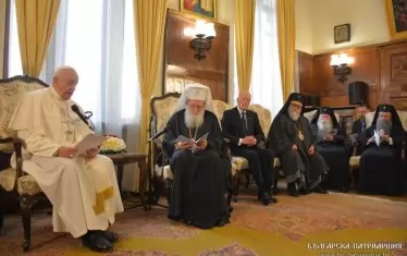 От своя страна папа Франциск е казал, че е искал "много" срещата си с патриарха и митрополитите. "Намирам се и аз тук - гост, посрещнат с обич - и изпитвам в сърцето си тъгата по брата - онази здравословна тъга по единството сред синовете на един и същ Баща, която Папа Йоан със сигурност имаше възможност да култивира у себе си в този град. Именно по време на Втория ватикански събор, свикан от него, Българската Православна Църква изпрати свои наблюдатели“, посочил папата, цитиран в съобщение на Светия синод.