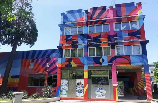 Всичко това се случва в Пазарджик, с Младежкия дом, една от големите централни сгради в града. Казусът, преминал през дълги перипетии, накратко е следният: през 2022 г. кметът Тодор Попов боядисва с над 20 цвята фасадата, мега шарения. Сградата, правена някога в духа на соц модернизма от варовик и мрамор, се превръща в еклектична смесица. Експерти и много от жителите не харесват новия вид. Не е имало и съгласувателен проект заради турската баня в съседство, която е паметник на културата. Институтът по паметници на културата налага глоба. Местният депутат Петър Куленски е един от тараните на възмущението. През 2023 г. става кмет, през 2024 г. се прави проект за връщане на стария вид. В началото на това лято почва премахването на боята. Днес сградата е в скеле.