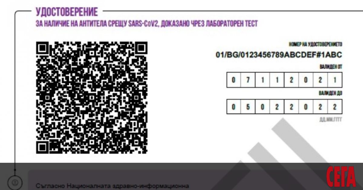 От промените не става ясно какъв точно ще е алгоритъмът за ползване на възможността за безплатно изследване и дали ще има някакви лимити и ограничения. Не е ясно дали за изследванията ще се издават кодове от личните лекари, както е при PCR тестовете, или ще се приложи някаква друга схема. Както "Сега" писа, въвеждането на удостоверение за наличие на антитела и приравняването им на зелен сертификат бе извършено от здравните власти у нас без да е постигнато общоевропейско решение по темата. Има специфични изисквания за тестовете - да са високочувствителни и сертифицирани, като удостоверение се издава при резултат от над 150 единици BAU. Счита се, че тази стойност е 10 пъти над нормата. Лабораториите вече се свързаха с Националната здравно-информационна система и издаването на удостоверенията вече е факт, като валидността им е 90 дни.