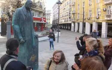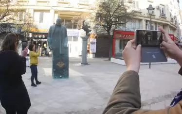 Акцията по създаването и поставянето на паметника явно е приключила призори или през нощта, разказва и OFFNews. Към 9 ч. вече е имало голяма група граждани, забавляващи се и снимащи поредната придобивка на площадчето, събиращо като туристическа атракция минувачи заради поставената и после набързо скрита зад метални ограждения водна стена, наречена още надгробна плоча.